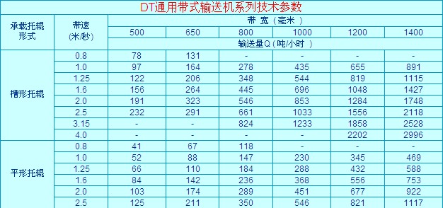 DT500、DT650、DT800、DT1000、DT1200、DT1400、DT1600、DT2000通用帶式輸送機(jī)系列。