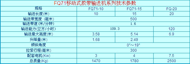 FQ71-10、FQ71-15、FQ-20移動(dòng)式膠帶輸送機(jī)系列。